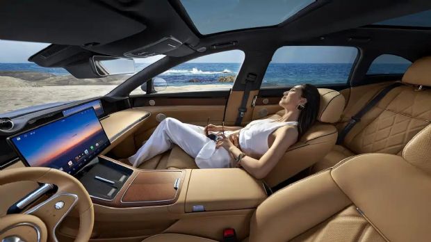 内饰提供4种配色方案,大五座布局下,前后排座椅均标配通风、加热、按摩功能。副驾甄享零重力座椅支持18向电动调节与10点按摩,搭配压缩机冷暖箱、32英寸巨幕投影等配置,将豪华感与科技感深度融合。鸿蒙智能座舱4.0系统配合25扬声器HUAWEISOUND音响,带来沉浸式交互体验。