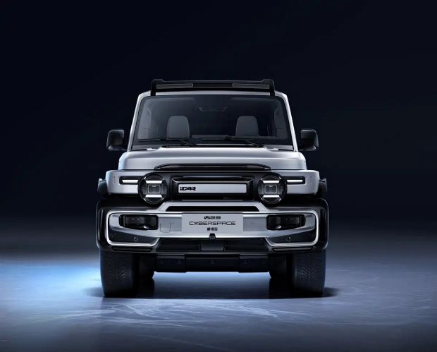 外观上,iCARV23赛博版巧妙融合复古韵味与赛博朋克美学。圆形大灯搭配方正车身轮廓,让人隐约看到经典越野车的影子,而新增的贯穿式前包围则注入强烈未来感,其中“X”形饰件线条粗犷,视觉冲击力十足。