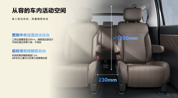 还有一大亮点就是星光730超88%的空间利用率,并基于2910mm的车长和4910mm的轴距,为车友带来了超1200mm车内高度和230mm的超宽二排过道,成年人无需侧身通过!而25处人性化空间,让诸如手机之类的小物品都能轻松收纳,第三排座椅可以魔法翻折,翻折后,能将储物空间扩展到1202L,兼顾乘坐与储物空间,期待它正式上市还能带来惊喜。
