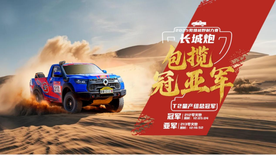 以赛验车、以赛促研,赛场即试验场,量产车即赛车!长城炮把火炮量产车直接送上极限赛道,形成赛场磨炼、技术优化、量产升级的闭环,把每一次出征,都变成产品迭代的最好机会,变成用户价值的厚积薄发。V6火炮作为长城“以赛验车”的全新成果,在长达4500公里环塔极限赛道上,取得T2量产组赛段“六冠王”;火炮战队在敦煌1000越野耐力赛包揽T2量产组冠亚军,再次验证了火炮在复杂路况的极限性能和极致可靠性。