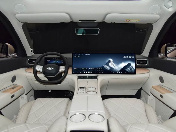 内饰方面,30英寸一体寰宇屏覆盖中控与副驾,木纹饰板加皮质包裹的中控台配黑白配色,营造高级氛围。方向盘按键简洁,无线充电面板后方保留物理按键,水晶质感增添华丽感。23扬声器伯牙之音音响(7.5.4.2布局,2880W峰值功放)带来优质听觉体验,256色氛围灯与3种香氛主题提升乘坐感,内饰另有琥珀棕等3款配色可选。