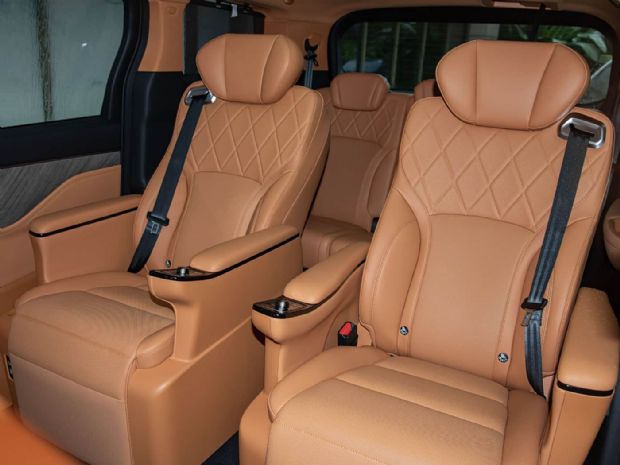 座椅布局采用家用MPV主流的2+2+3形式,二三排座椅共轨设计大幅提升灵活性与实用性。二排配备双活动扶手,标配加热和通风功能,还可选装双实体按键悬浮式零重力座椅;第三排座椅靠背角度可调,保障后排乘客舒适性。细节上,后排车门双层踏板、两段式长扶手,方便老人小孩上下车;二三排侧窗遮阳帘、后备厢220V车载电源,再加上后排17.3英寸娱乐屏与冰箱,全方位贴合家庭出行需求,考虑十分周全。