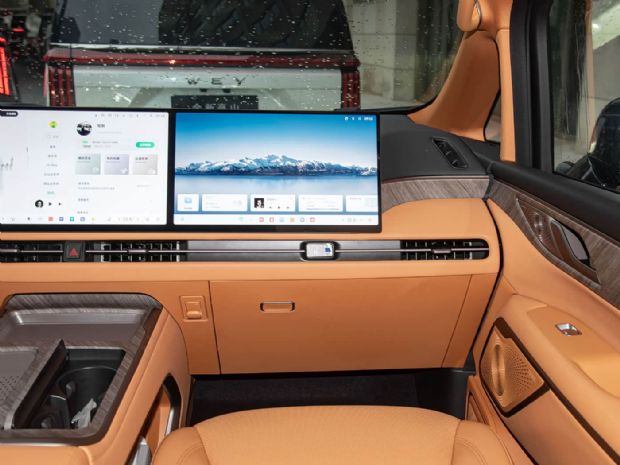 内饰提供云朵白、墨玉黑、霞光橙三种配色,并搭配白、黑、橙三款顶棚颜色,打造温馨座舱氛围。配置上,前排搭载12.3英寸仪表屏+双15.6英寸中控屏与副驾屏+26英寸抬头显示的大屏组合,搭配CoffeeOS3.2智能操作系统和车规级8295芯片,还支持CoffeeGPT大模型,操作流畅、功能丰富。同时,360全景影像、透明底盘、64色氛围灯,以及HiCar、Carlink、CarPlay手车互联功能一应俱全。23扬声器音响系统(最大功率2440W,7.1.4布局),更能为家庭出行带来沉浸式音效体验。