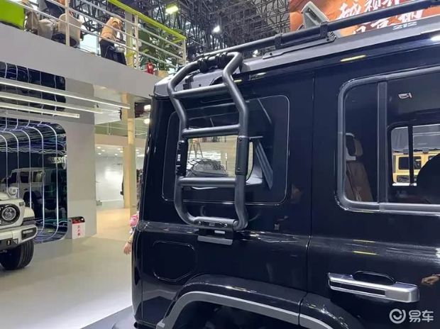 尾部方面,能看到新车搭载了标志性的小书包,但是采用了中置的风格,同时尾部还有一个细节的外接口设计,在越野车中显得十分贴心。竖置的尾灯也是一款硬派SUV常用的设计手法。