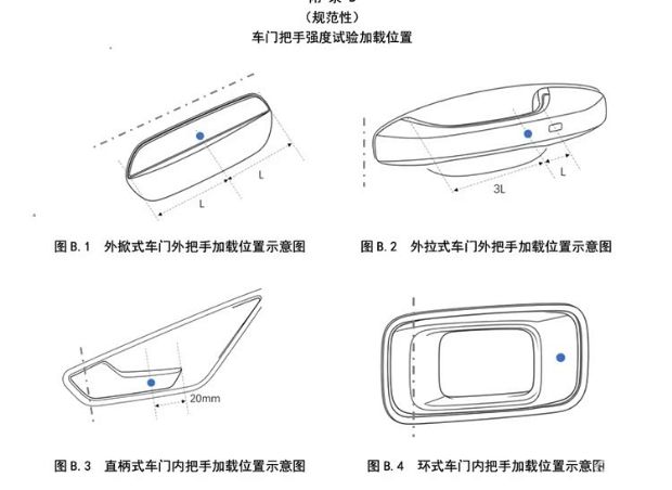 对于其他型式车门把手,加载装置中心位置位于手部操作区域的中间位置。