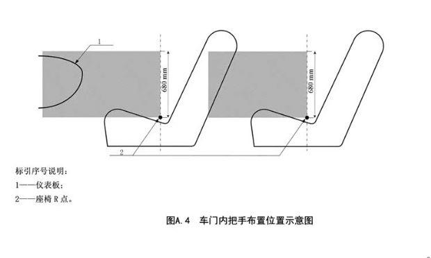 4.1.2.2 每个车门(不包括背门)至少有一个机械释放车门内把手应易于车内乘员识别,其安装位置应符合以下要求: