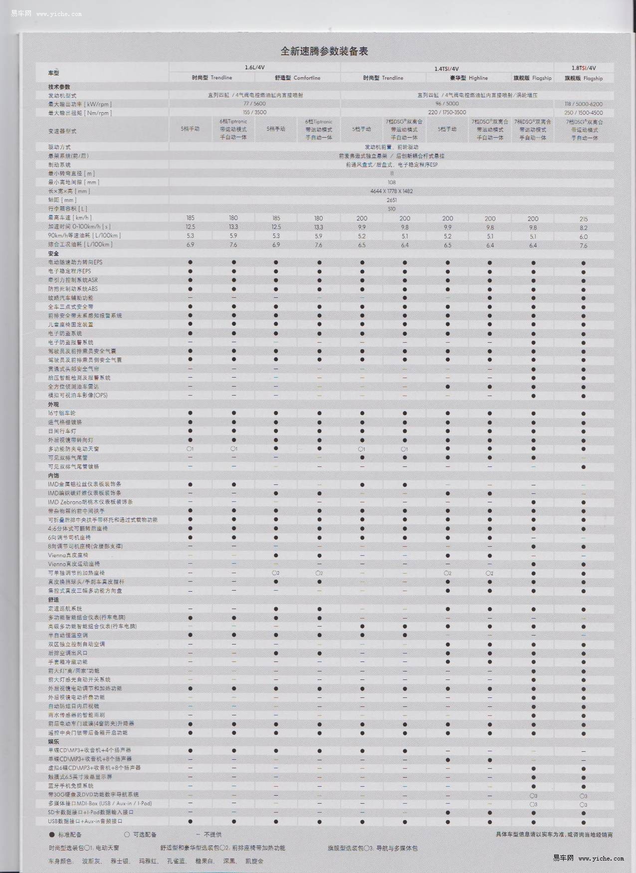 新速腾完整配置单爆光,从参数配置单可以更直观的了解新速腾共有10款车型,3个排量、3款变速箱。