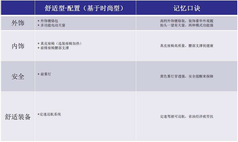 舒适性主要在时尚型基础上增加了天窗、真皮座椅、雾灯和定速巡航等配置,这样看来舒适性是新速腾将会主推的车型。
