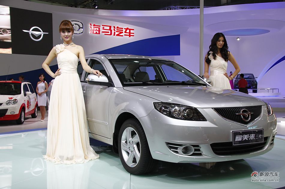 图片说明:2011年04月19日至28日,第十四届上海国际车展以全新的境界和面貌在上海浦东新国际博览中心举行。本届车展吸引参展车型共1100辆,其中新能源汽车共计86辆,跨国公司的全球首发车19辆,国内车企的全球首发车辆达56辆,整体全球首发车数量为75辆。本图为:海马展台的福美来三代车型。