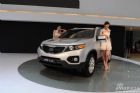 图片说明:2009上海车展于4月20日至28日在上海新国际博览中心隆重举行,有来自25个国家和地区的约1500家企业参展,已经成为亚洲甚至世界上非常具有影响力的车展之一。图为上海车展起亚索兰托图片。