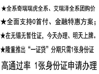 无锡鼎瑞奇瑞4S店 无锡鼎瑞汽车销售服务有限公司直营店0首付交流微信号 :ai16000 ★